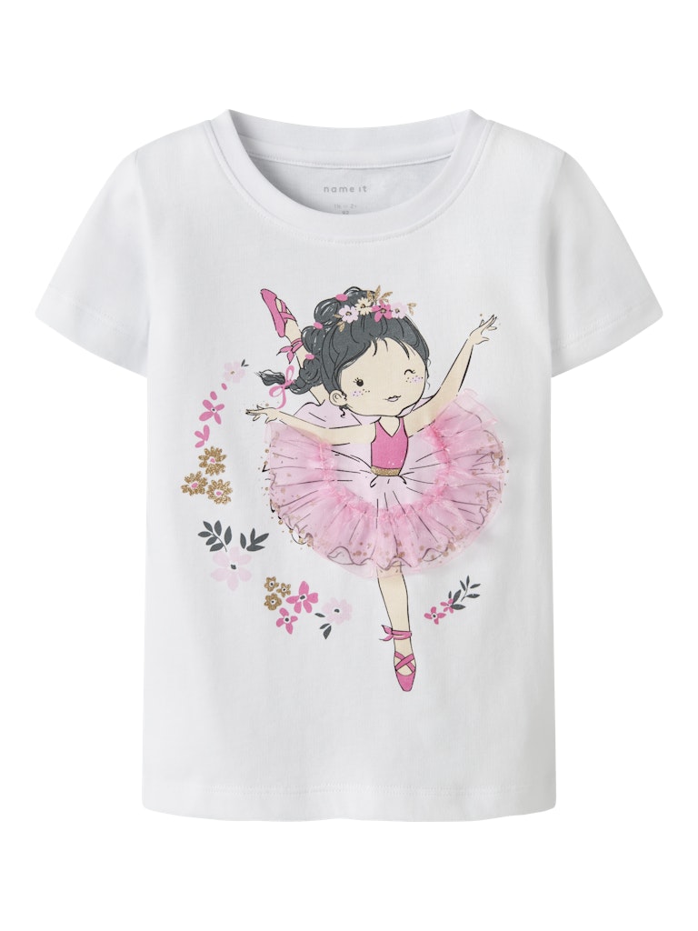 Let your young one step into style with this adorable Name it Girls Ballerina T-Shirt in white. It features a fun 3D tulle tutu and floral pattern, and is made from soft organic cotton to keep her comfortable throughout the day. Ideal for active play, casual trips, or layering under her favorite outfits, it's a versatile wardrobe staple that matches with anything. Combine it with our vibrant leggings for a look that's uniquely hers!