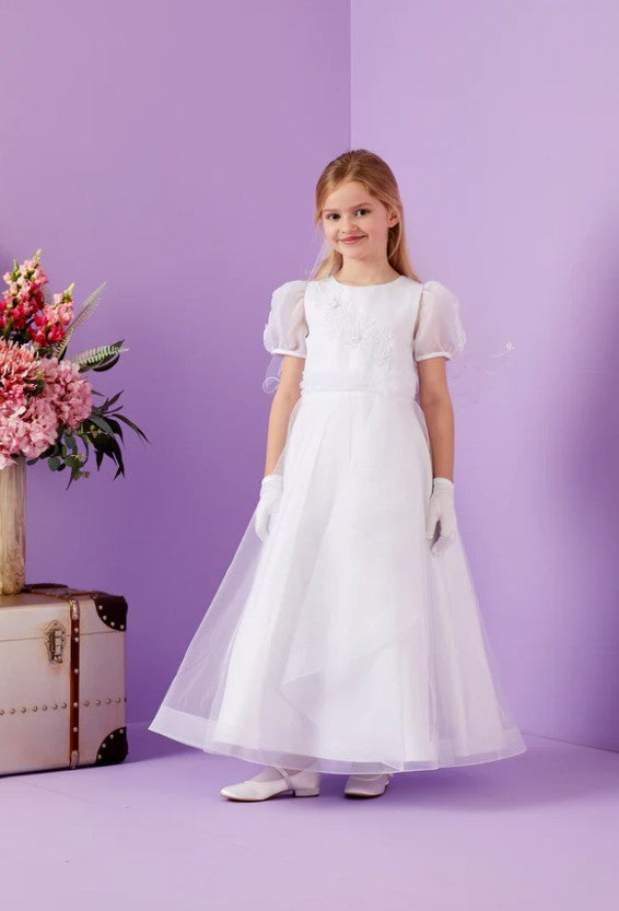 Graceful, elegant, and timeless, the Peridot Ariana Holy Communion Dress is a beautiful ankle-length choice for your little girl’s special day. With its refined simplicity and classic detailing, this dress offers a soft, angelic look that never goes out of style.