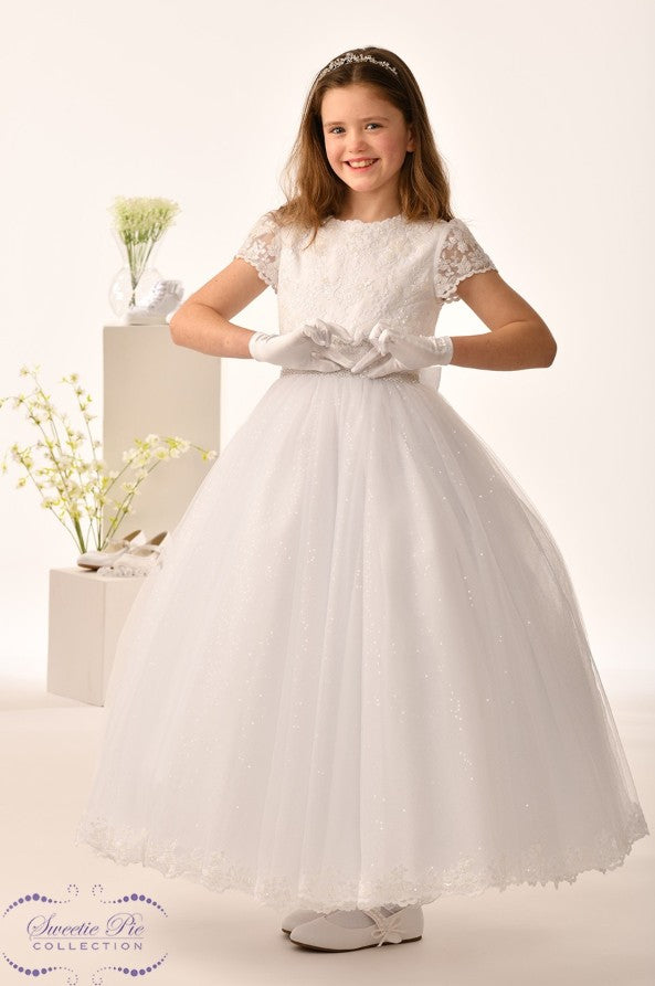 A dream dress for little girls who love a bit of sparkle. Whether she’s twirling at the celebration or walking proudly down the church aisle, the Sweetie Pie SW5037 is guaranteed to be unforgettable.