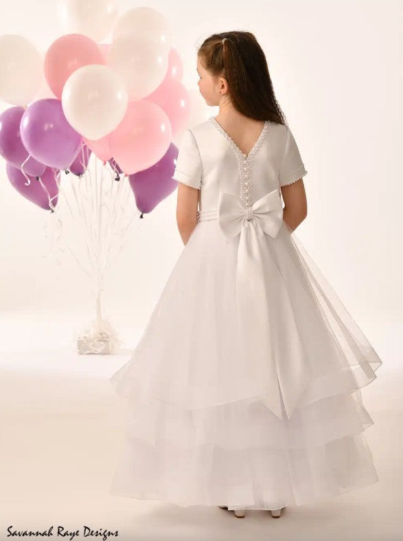 - Large satin bow at the back for that extra touch of Communion-day charm.