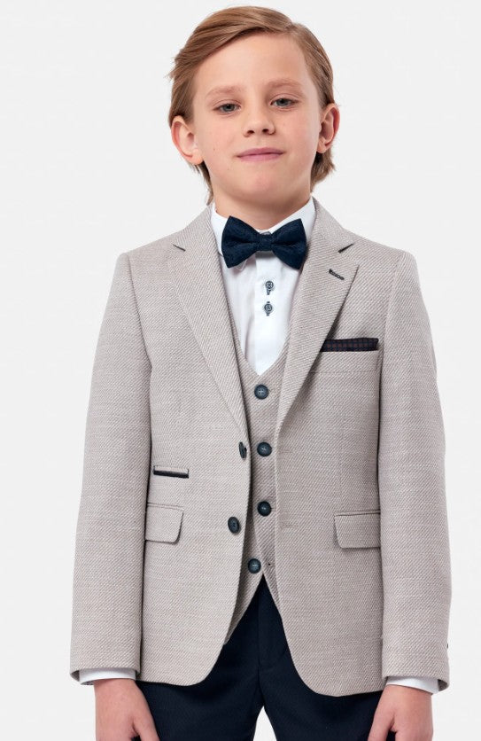 Introducing the Benetti Boys HARROLD Jacket in Beige – where sophistication meets fun! This dapper little number is designed to make any boy feel like the star of the show on his special day. With Benetti's signature craftsmanship, the HARROLD brings together contemporary style and timeless appeal, perfect for First Holy Communion, weddings, or any occasion calling for a touch of class. The soft beige tone offers a refreshing take on formal wear that's both eye-catching and versatile. Pair it with the matching suit for full impact or mix with chinos for a more relaxed vibe – either way, your son will look absolutely brilliant while staying comfortable all day long.