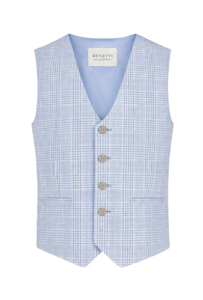Introducing the Benetti Boys 3-Piece ALBERT BLUE Communion Suit, where sophistication meets fun! This striking three-piece ensemble is designed to make your son the star of his special day. Featuring sharp tailoring, refined details, and that perfect pop of blue, it's the ideal choice for communions and milestone celebrations. Mix and match with a crisp shirt and tie, or go bold with a bow tie to match his personality. Every stitch is crafted to help him feel confident, comfortable, and absolutely brilliant. Watch him shine in this timeless Benetti classic!