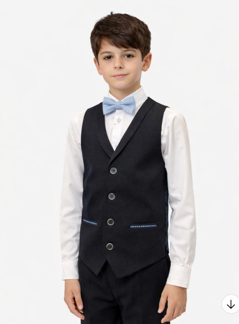 Fresh and vibrant three-piece boys suits from the Benetti Boyswear range. The perfect choice for Communions and formal occasions. Sleek detail, signature edits and sharp accessories ensure he will look the part for his big day. Add some style and sophistication to his formal wear wardrobe with a Benetti suit. Team with a shirt and tie or bow-tie to complete the attire look.