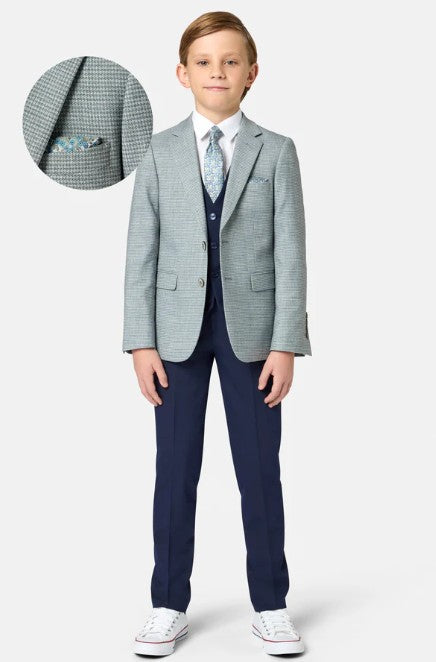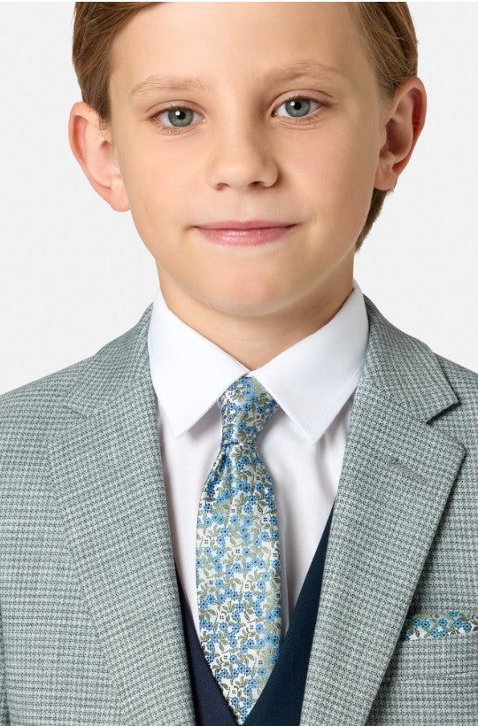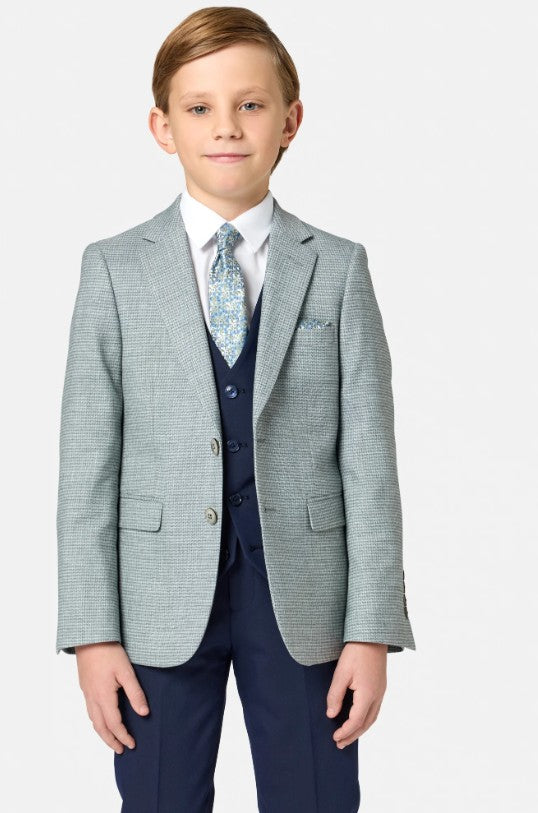 Make a statement at his First Holy Communion with the Benetti Boys LUCAS 3-Piece Suit in sage, a stylish ensemble that proves formal wear can be fun. The textured sage jacket pairs beautifully with a navy waistcoat and matching trousers, creating a sophisticated look with genuine personality. Quality craftsmanship ensures he stays comfortable all day while looking sharp, and the thoughtful colour palette helps him stand out for all the right reasons. Whether it's a religious milestone or special celebration, this three-piece delivers the polish and pizzazz to make the occasion truly unforgettable.