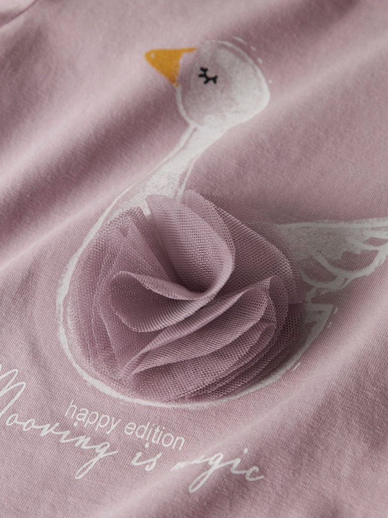 • 3D detail: Long-sleeve top in dusky pink with 3D tulle swan detail and pretty gathered shoulders